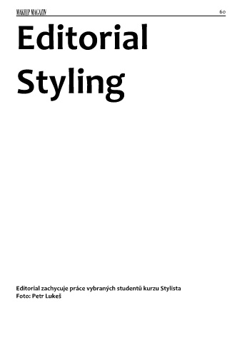 MAKEUP MAGAZIN 60 Editorial Styling Editorial zachycuje práce vybraných studentů kurzu Stylista Foto: Petr Lukeš