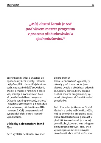způsobu myšlení stylisty. Intenziv- Hana: Jednoznačně vyplatila, ty